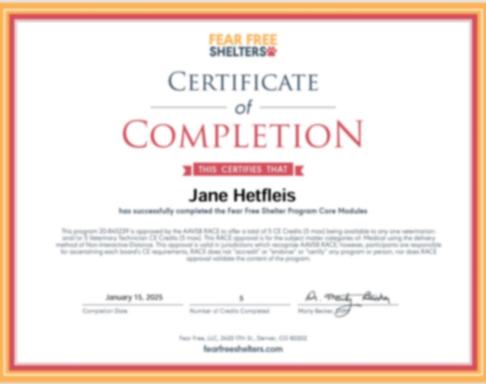 Fear Free/Force Free/Positive Reinforcement handling and training is what we do. We follow the most humane and current best practices to ensure the health, safety, and mental wellbeing of your pets.